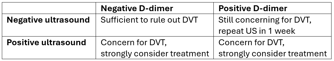 Summary of Interpreting Results of D-Dimer and Ultrasound for DVT