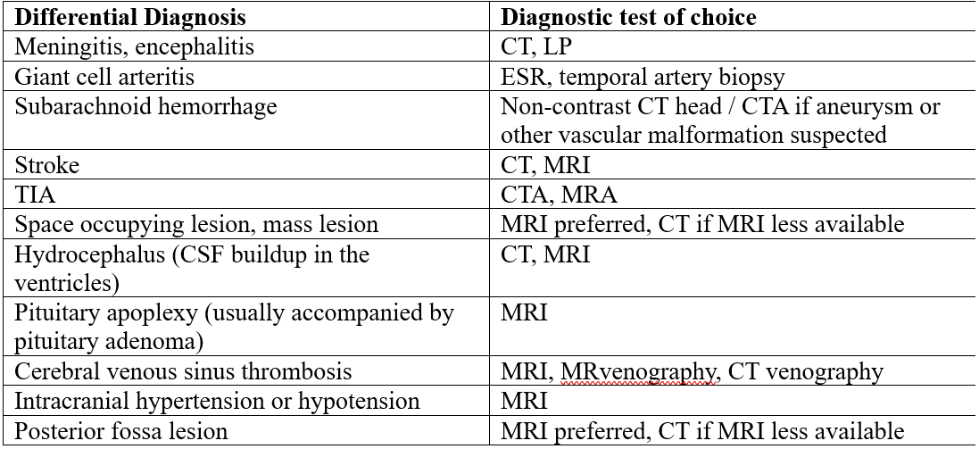 Back to the case: You have sufficient suspicion to rule out a mass lesion and decide to order a non-contrast CT head to start, and provide emergency department precautions in the meantime.